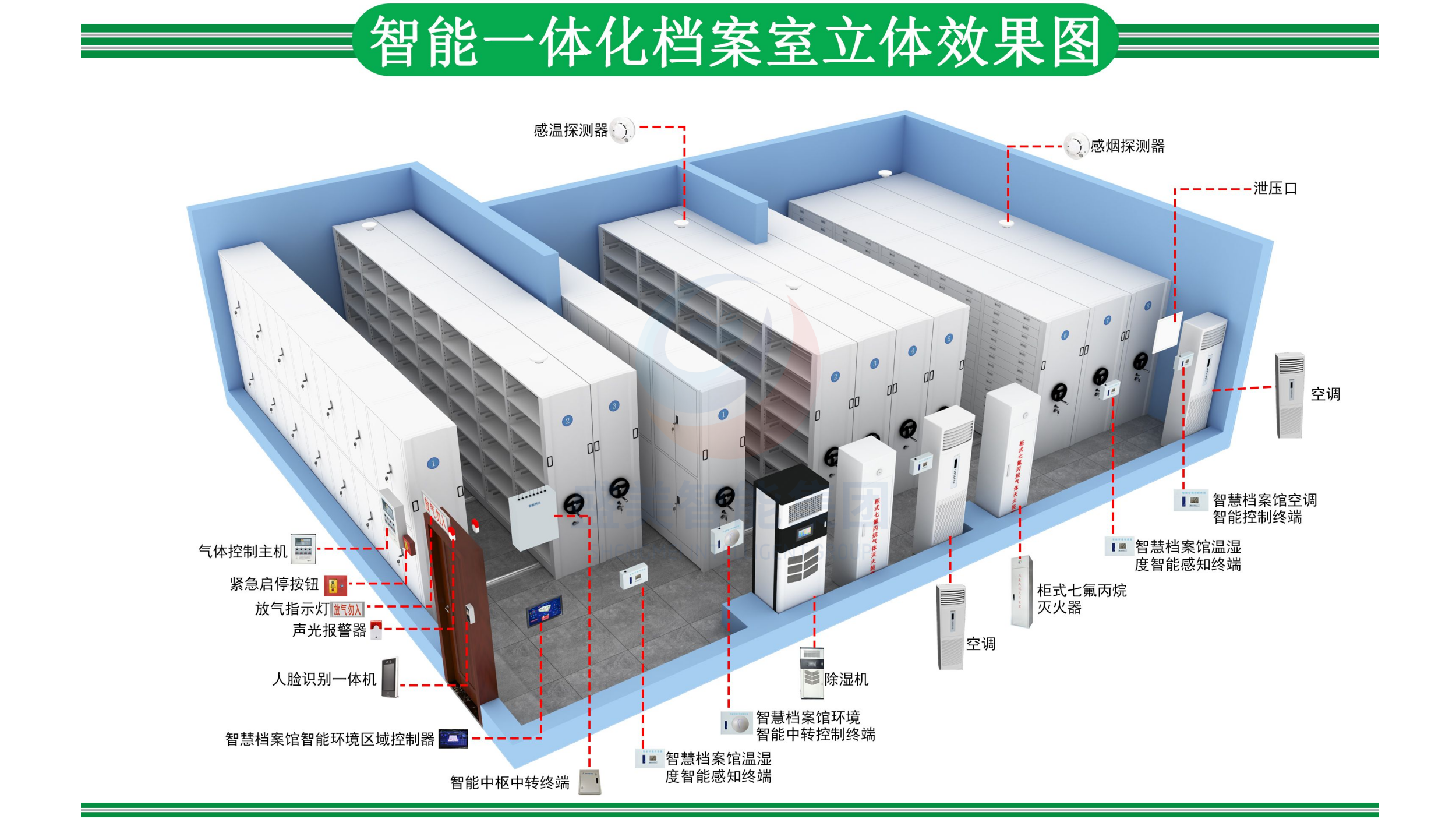 主营:智能密集柜,智能化一体档案室,数字化档案库房,档案室环境监控系统