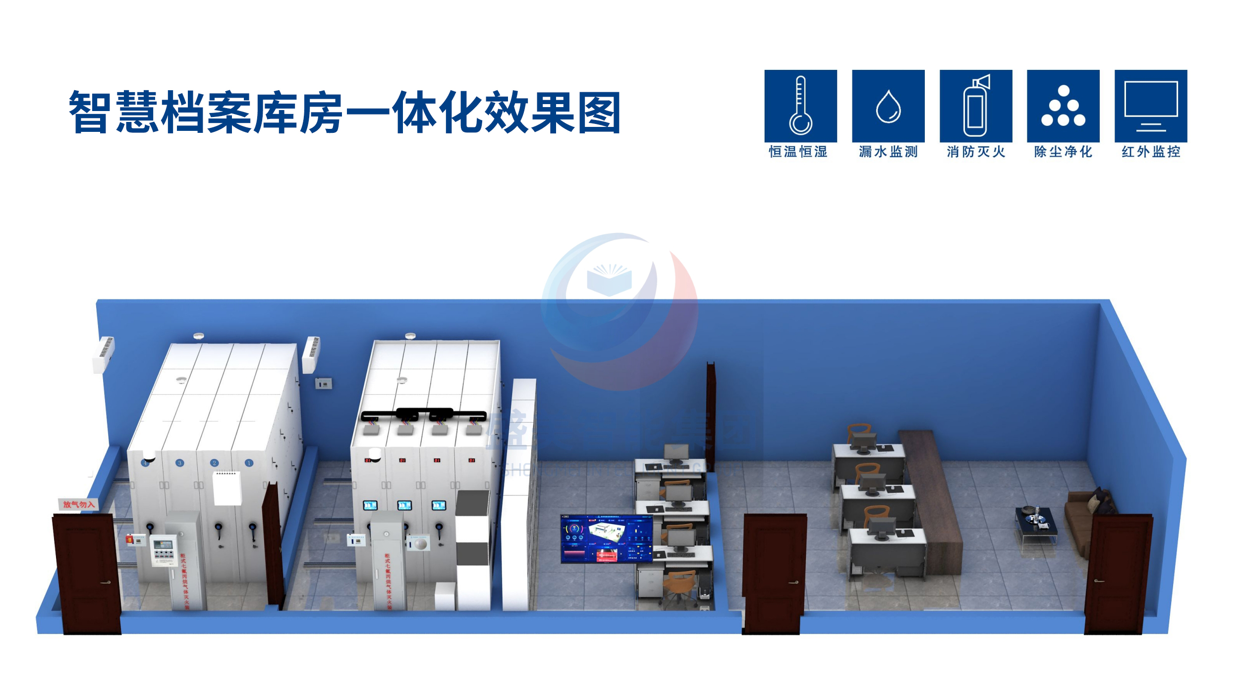 主营:智能密集柜,智能化一体档案室,数字化档案库房,档案室环境监控系统