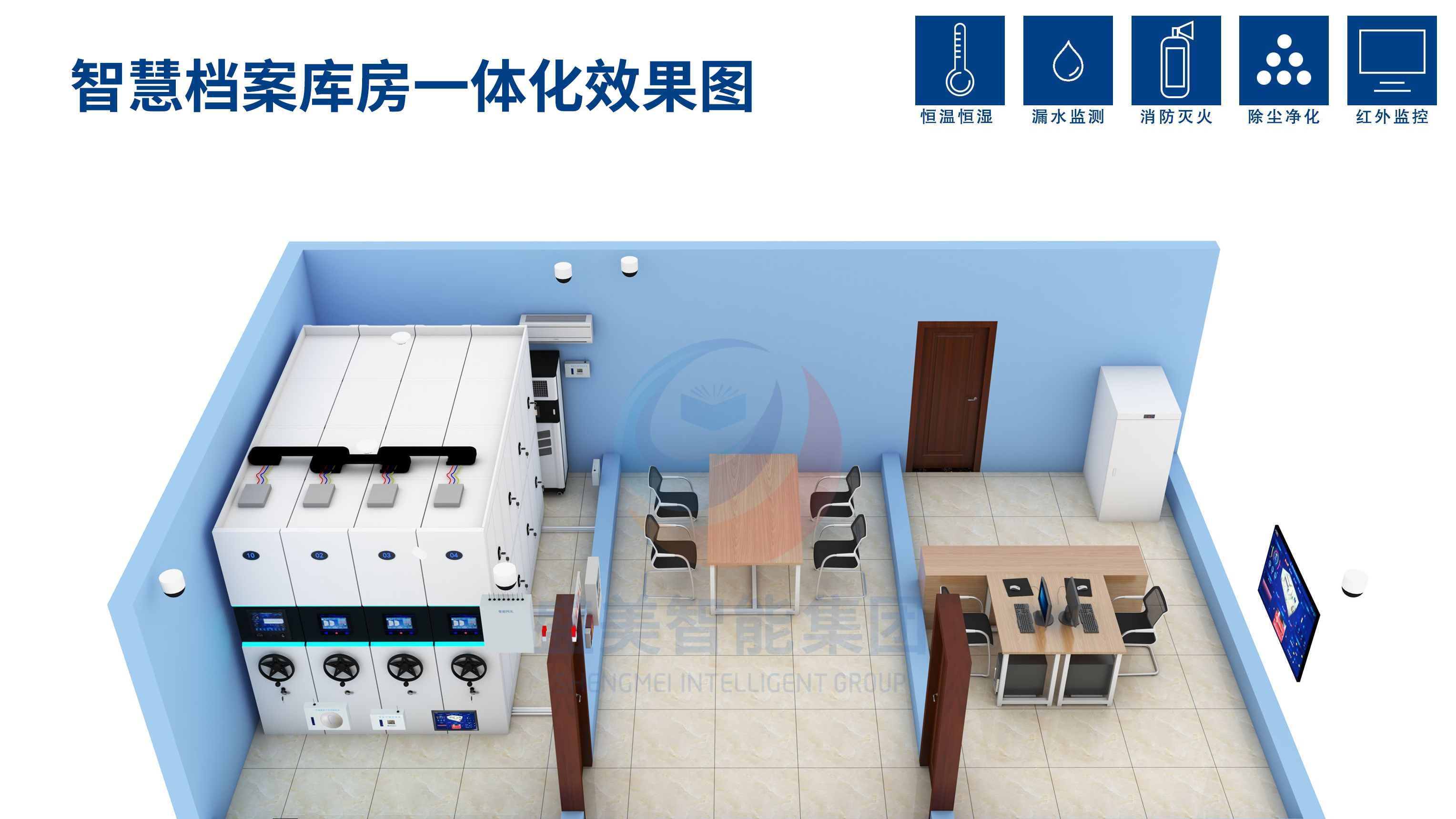 主营:智能密集柜,智能化一体档案室,数字化档案库房,档案室环境监控系统