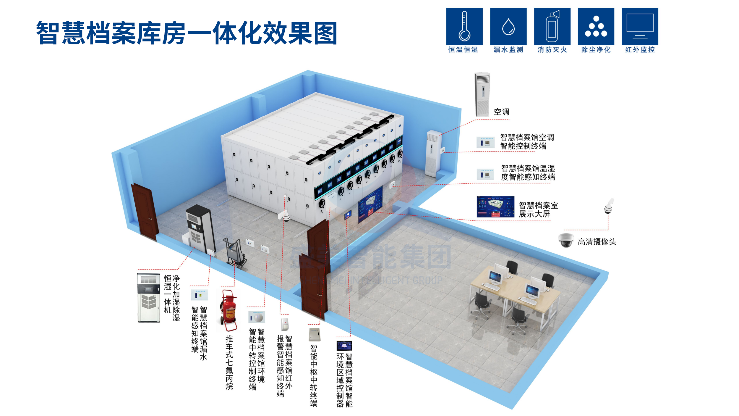 主营:智能密集柜,智能化一体档案室,数字化档案库房,档案室环境监控系统