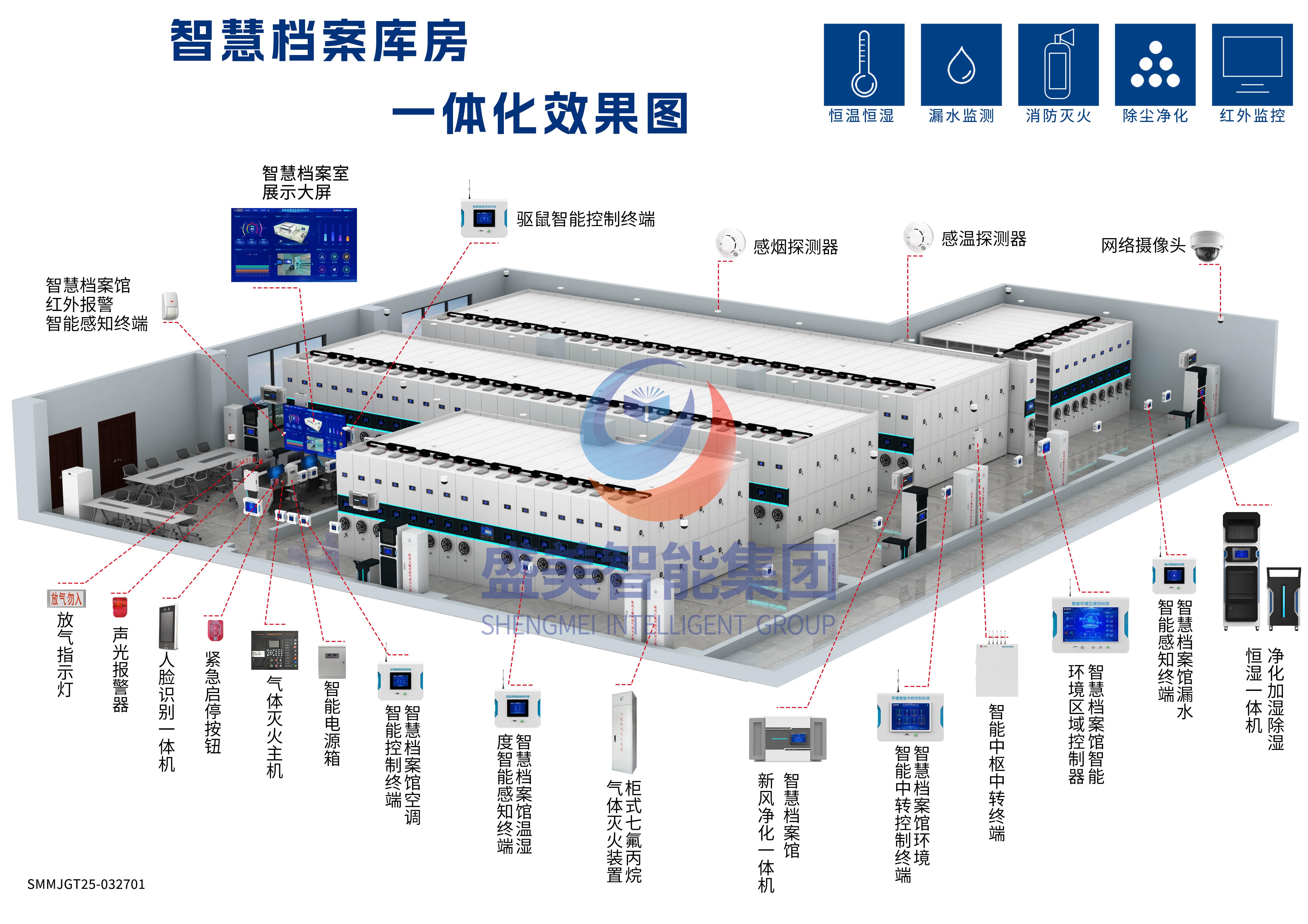 系统实时监测库房温湿度(精度 ±1℃/±2%),当夏季高温或梅雨季湿度超标时,恒温恒湿设备自动启动调节(维持 14-24℃、45-60% 湿度),避免纸张霉变、字迹褪色;同时配备空气净化系统,过滤 PM2.5 和有害气体(如甲醛),解决传统库房因通风不足导致的档案异味问题。